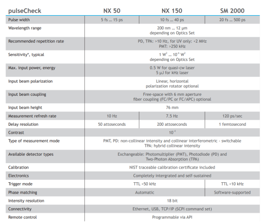 ● 测量参数范围宽:从紫外到远红外,从 5 fs 到 500 ps