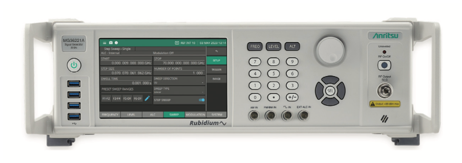Rubidium MG362x1A 低噪声射频 / 微波信号发生器可选装内置铷原子频率基准,从而实现原子钟级别的频率稳定性。卓越的频率稳定性与低相位噪声性能相结合,使该产品成为众多计量应用场景的理想选择。