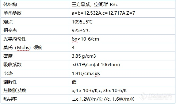 * 倍频转换效率高(相当于KDP晶体的6倍)