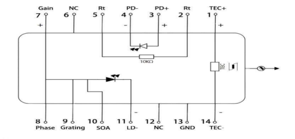 高功率窄带可调谐DBR激光器是一种带有半导体光放大器(SOA)的DBR激光器。其波长可以连续灵活地调谐,并可以调谐到ITU信道网格。光输出功率可以通过SOA注入电流来调节,以在应用的调谐范围内平衡功率。