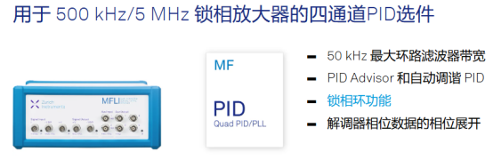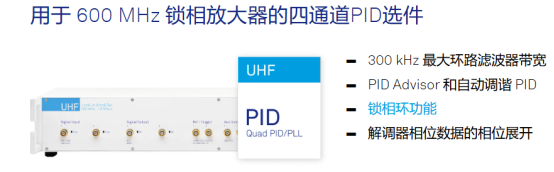 瑞士苏黎世仪器公司提供 PID 控制器,作为锁相放大器、阻抗分析仪和 Boxcar 平均器的专用升级选件。因此,PID 的输入可以有多种不同的选择,包括解调信号的振幅、相位、正交和同相分量、Boxcar 的输出以及辅助输入和输出。PID 集成的数字信号处理,保证了最佳的信噪比、最小化的反馈回路延迟以及非常稳定的闭环操作。即使信号非常微小,PID 也可在噪声强烈、杂散信号丰富的背景中精准定位,并用作可靠的输入。随后,反馈信号可作为模拟输出,也可直接应用于内部频率发生器输出,用于控制其振幅、频率、偏移量和相位。