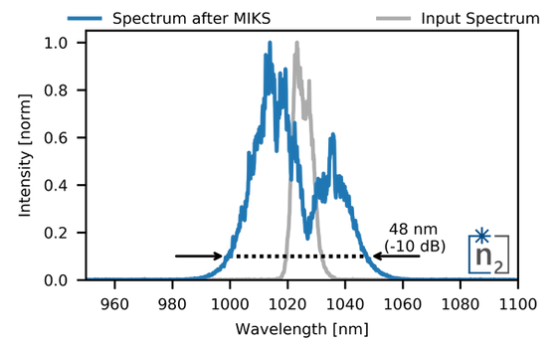 n2 photonics的脉宽压缩产品研发始于2016年,经过不断完善和科研产品定型,于2021年推出了经过多种前端光源验证的MIKS系列飞秒脉冲压缩模块。n2 photonics可以提供不同的附加模块 (MIKS) 来扩展脉冲的光谱范围并缩短脉冲的时间,经过压缩的飞秒光束,脉宽可由输入时的数百飞秒降低至15fs以下。
