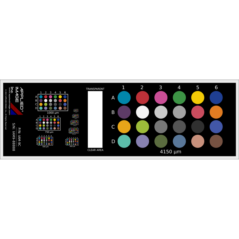 对于校准和分析显微镜测量系统,IAM系列图像分析千分尺非常适合。IAM系列按照NIST标准校准,并以业内最佳的线边缘质量成像,是一系列多样化的幻灯片,适用于颜色校准(IAM-9C)、光学放大、帧失真和其他应用领域。定制功能、基板、尺寸和设计可作为定制解决方案提供。