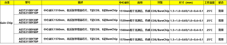 增益芯片是用作外腔半导体激光器光增益介质的半导体光元件,也称为反射SOA(RSOA)。安立有经验提供增益芯片,支持从O波段到U波段的外腔激光器。此外,根据所使用的光系统,可以选择LR(低反射率)类型或HR(高反射率)类型作为垂直刻面侧的反射率。