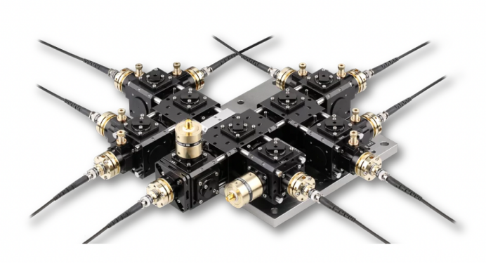 该2⇾8光纤端口集群是一款紧凑型光机械单元,可将两个相同波长的光纤耦合光源合并,再以高效率和可变分光比将合并后的辐射光分配至8路输出光纤电缆。
