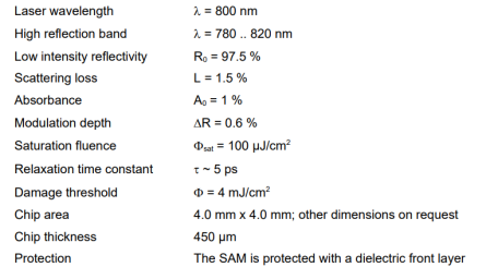 SAM800 | 780-830 | 5-10 | 1 ps |